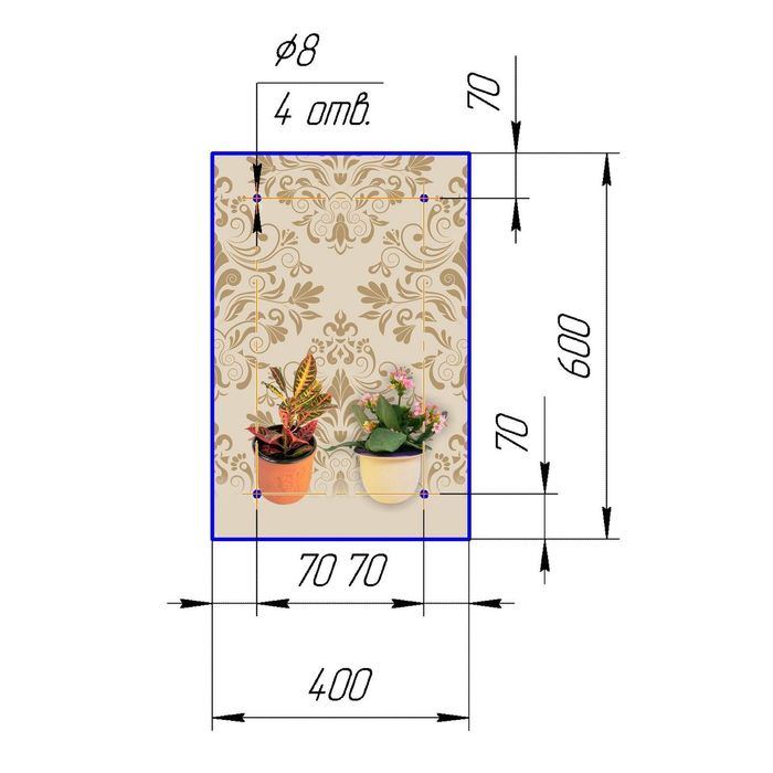 Стеклянный фартук закаленное стекло М1 "Цветы в горшках", 600х400х4