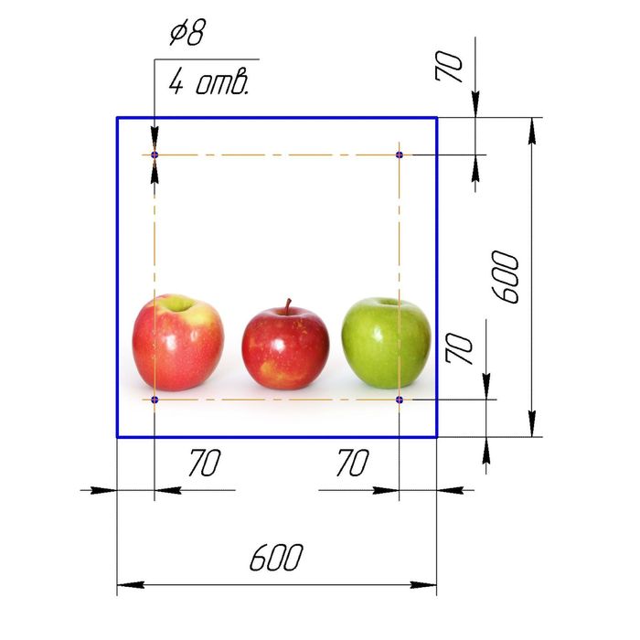 Стеклянный фартук закаленное стекло М1 "Фрукты", 600х600х4