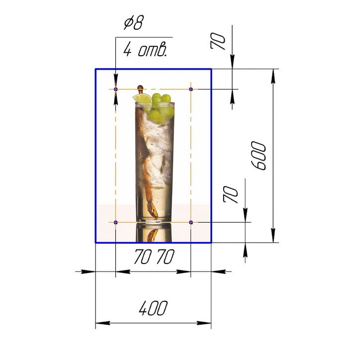 Стеклянный фартук закаленное стекло М1 "Коктейли", 600х400х4