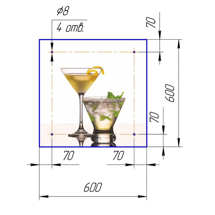 Стеклянный фартук закаленное стекло М1 "Коктейли", 600х600х4