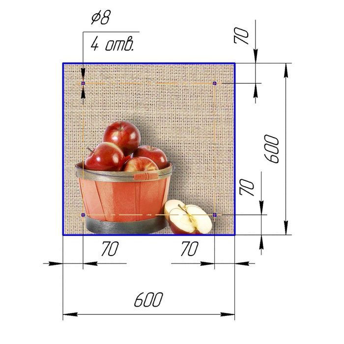 Стеклянный фартук закаленное стекло М1 "Красные яблоки", 600х600х4