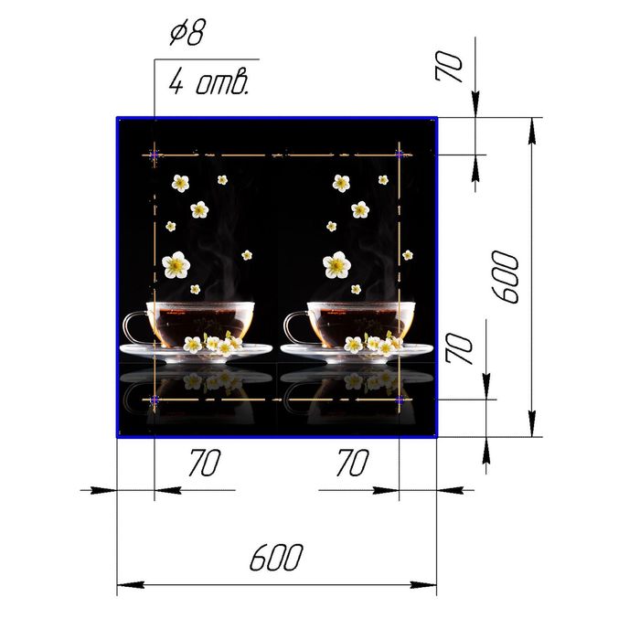 Стеклянный фартук закаленное стекло М1 "Кружка чая", 600х600х4