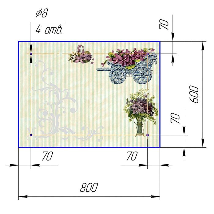 Стеклянный фартук закаленное стекло М1 "Прованс", 600х800х4