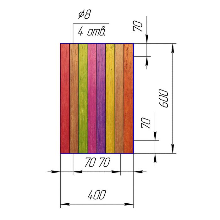 Стеклянный фартук закаленное стекло М1 "Разноцветный забор", 600х400х4