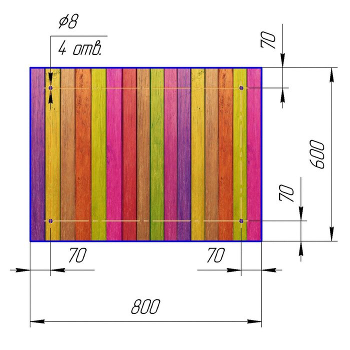 Стеклянный фартук закаленное стекло М1 "Разноцветный забор", 600х800х4