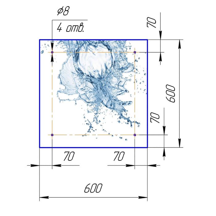 Стеклянный фартук закаленное стекло М1 "Вода", 600х600х4
