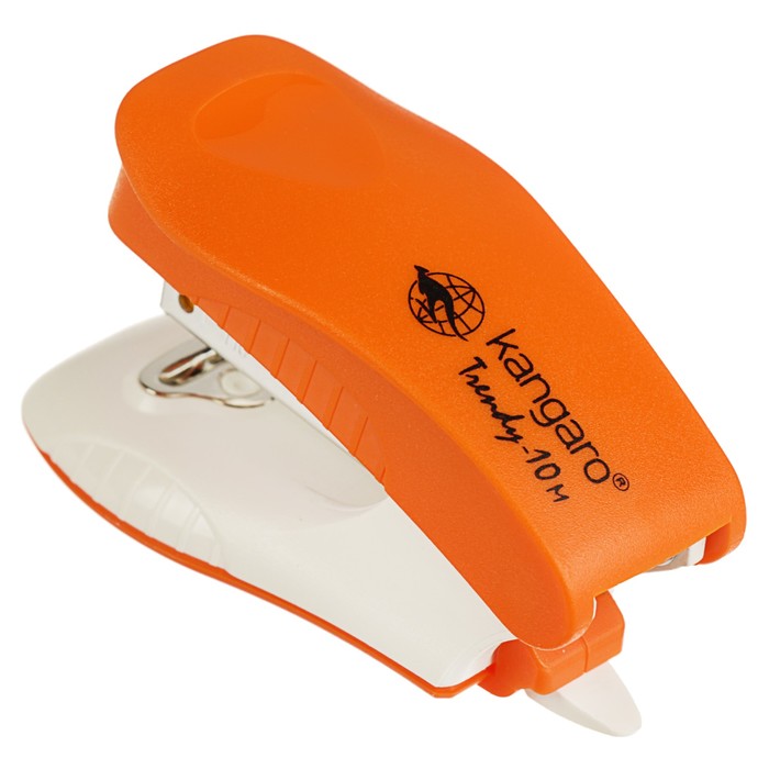 Степлер №10 до 10 листов Kangaro mini TRENDY 10M, встроенный антистеплер, оранжевый