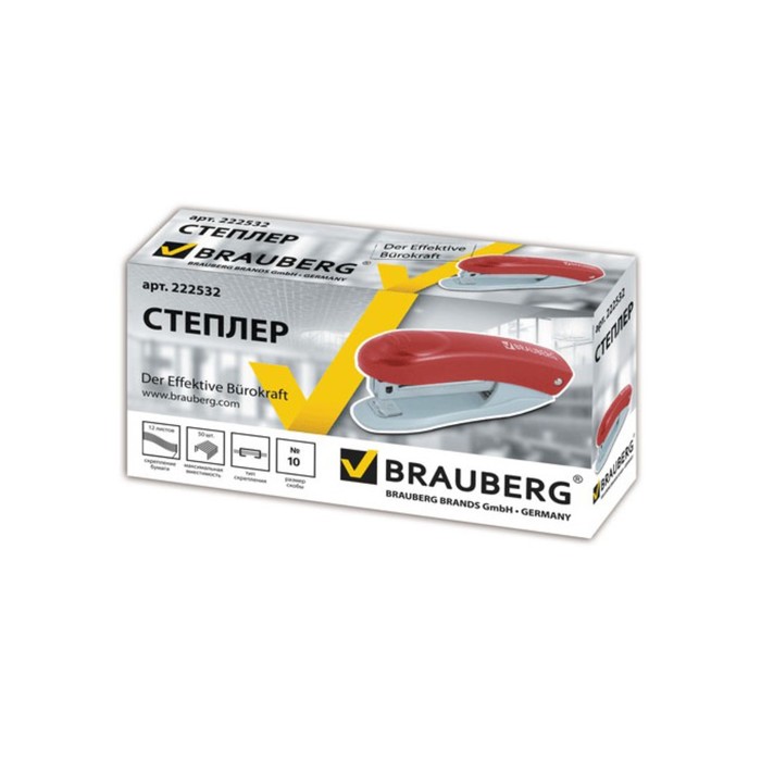 Степлер BRAUBERG Einkommen №10 на 12л, пластиковый корпус, антистеплер, красный 222532