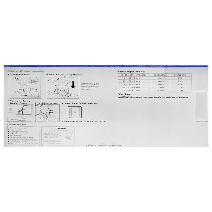 Степлер мощный до 120 листов Kangaro HD-23 S15 FL, скобы 23/6-23/15, микс
