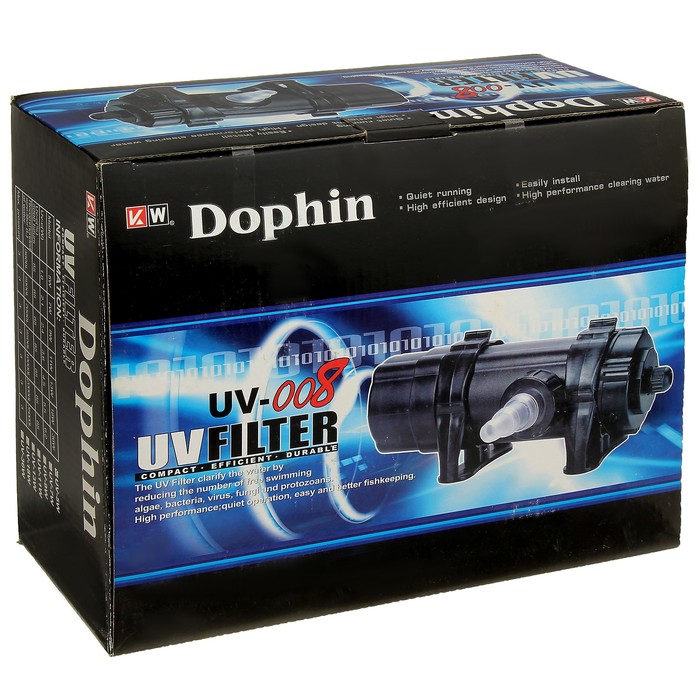 Стерилизатор Dophin UV-008 Filter, 5 Вт отлично справляется с обеззараживанием и не наносит вреда обитателям аквариума. Вы можете забыть об угрозе рыбкам и наслаждаться процветанием созданного вами водного мира.