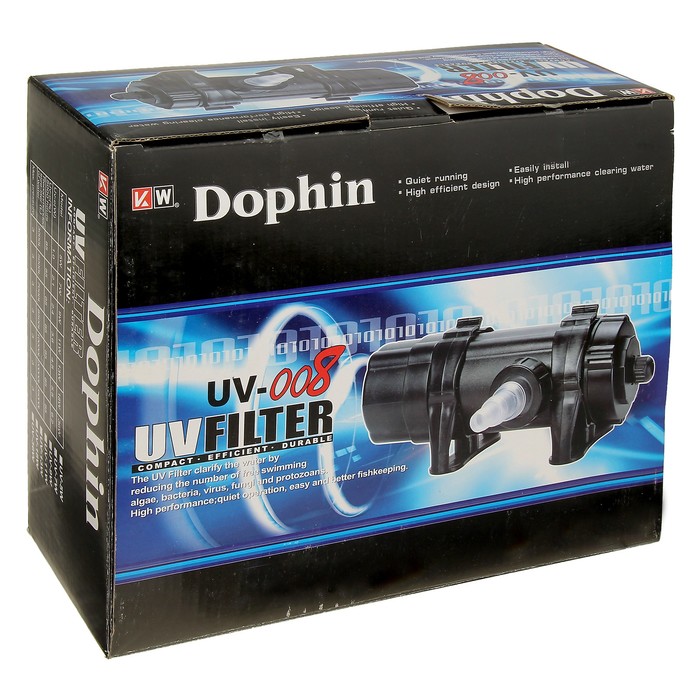 Стерилизатор Dophin UV-008 Filter, 7 Вт отлично справляется с обеззараживанием и не наносит вреда обитателям аквариума. Вы можете забыть об угрозе рыбкам и наслаждаться процветанием созданного вами водного мира.