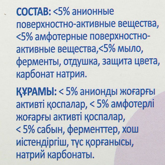 Специальные компоненты эффективно удаляют самые трудные пятна и придают белью невероятную мягкость. Приятный аромат подарит бодрость и хорошее настроение на весь день!