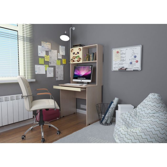 Место для учёбы и работы за компьютером должно быть удобным. Данный стол отвечает этому требованию. Поставьте на него монитор, разложите учебники, тетради и прочую канцелярию — и уголок для занятий ребёнка готов!