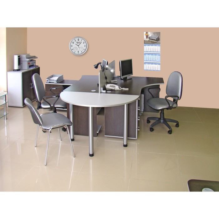 Этот удобный стол отличается плавными линиями и ненавязчивым цветом, благодаря чему легко впишется в интерьер кабинета. Конструкция модуля позволит разместить на нём компьютер, папки с документами, книги и канцелярские предметы.