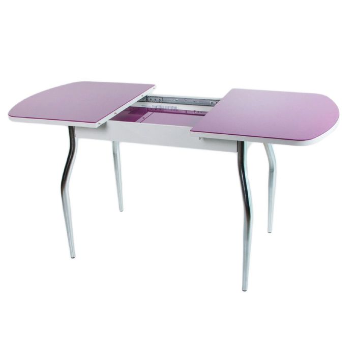 стол раздвижной Эстель белое/фиолетовое/хром фигурные