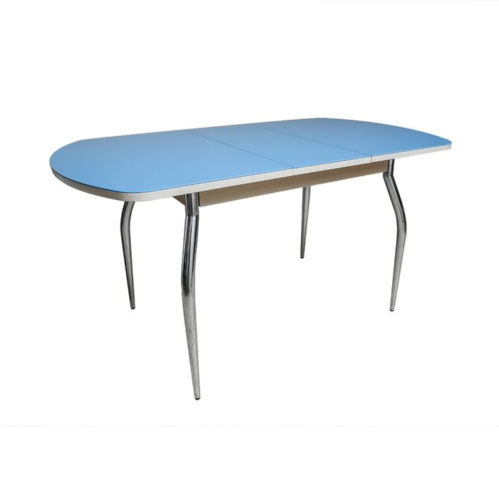 стол раздвижной ПГ-01СТ белое/голубое/хром фигурные