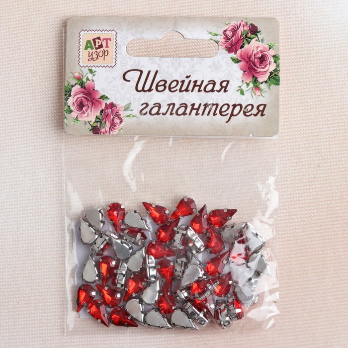 Стразы пришивные в оправе "Капля", 50шт, цвет красный