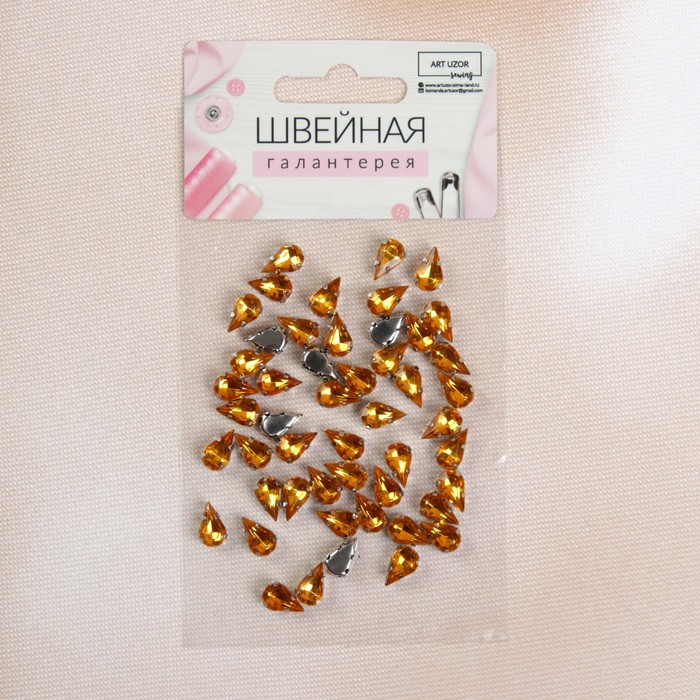 Стразы пришивные в оправе "Капля", 50шт, цвет жёлтый