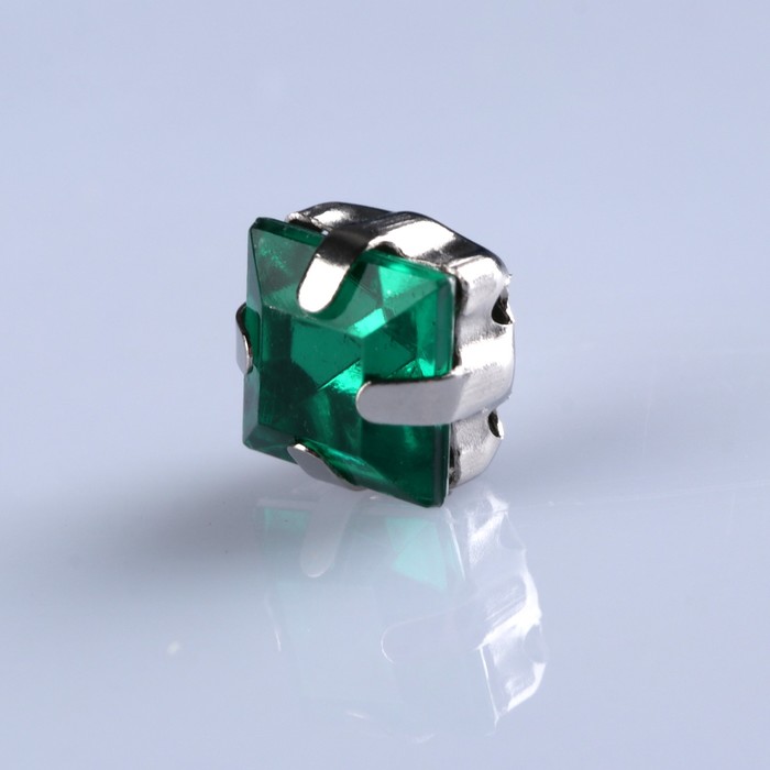 Стразы пришивные в оправе "Квадрат", 50шт, цвет зелёный