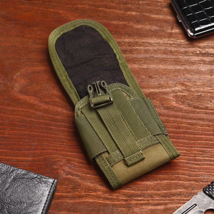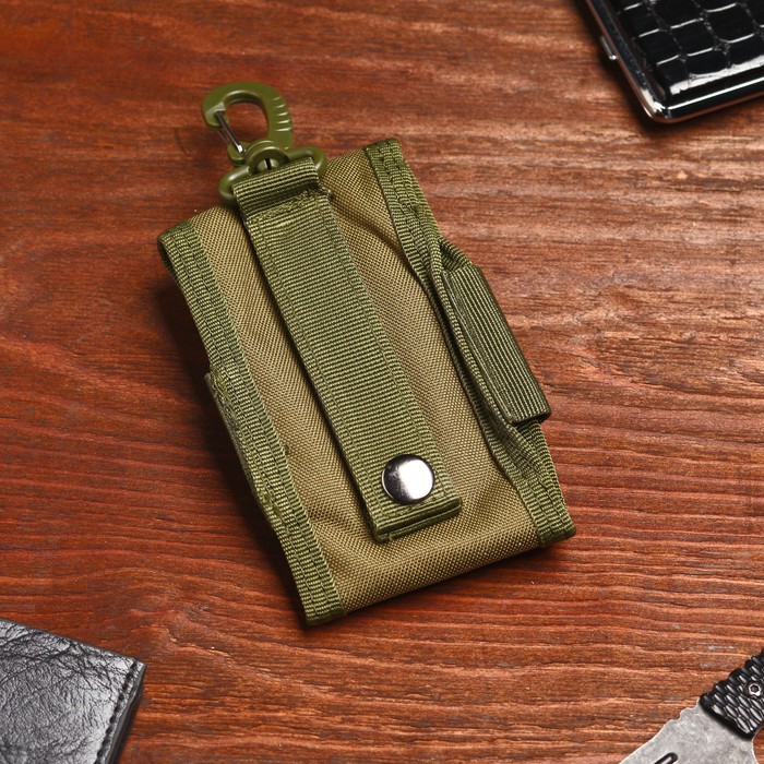 Сумка-чехол походная темно-зеленая на защелке с карабином влагостойкая 10*14см