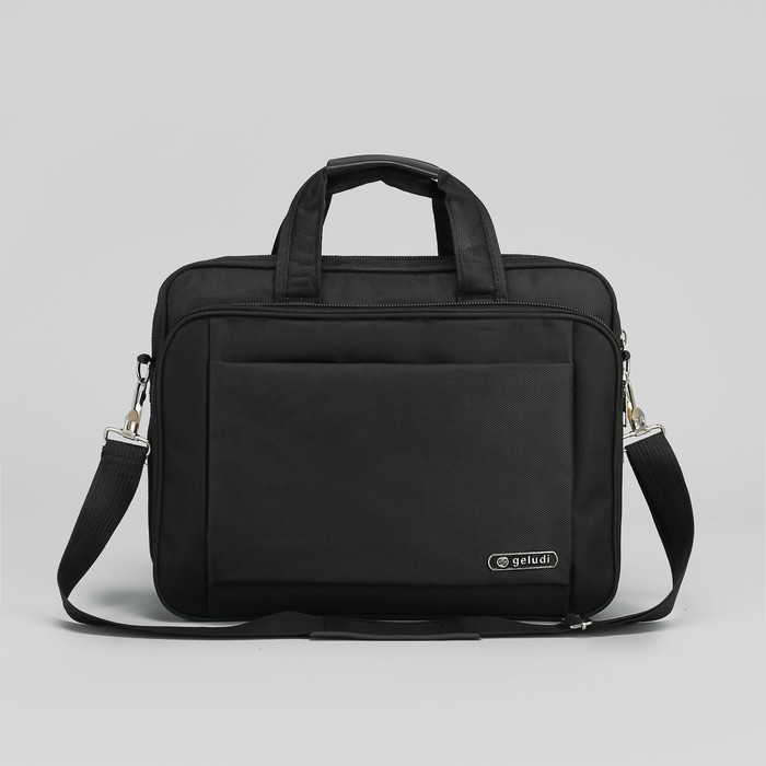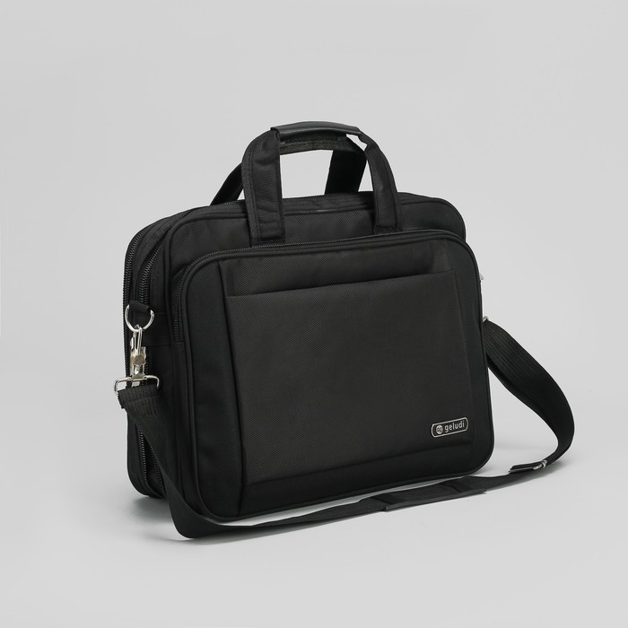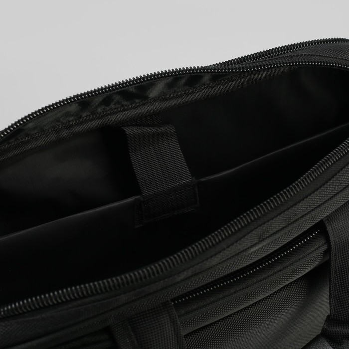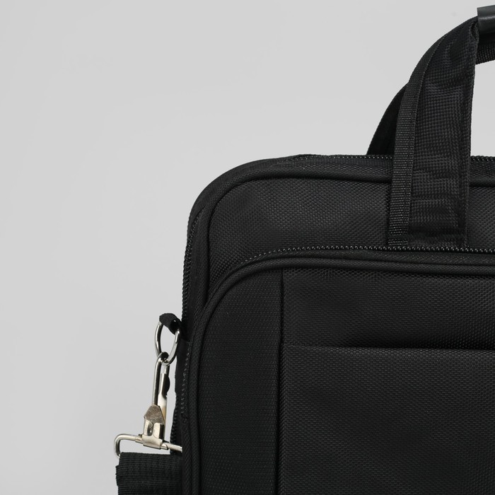 Сумка деловая с расширением, 2 отдела на молниях, 3 наружных кармана, длинный ремень, цвет чёрный