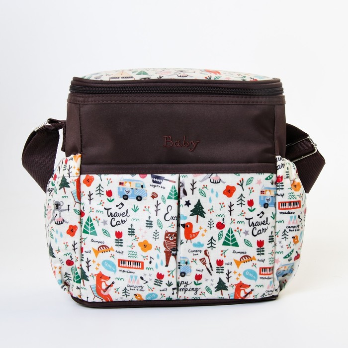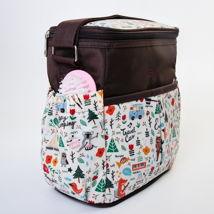 Сумка для мамы и малыша, цвет коричневый, рисунок «Весёлый кемпинг»