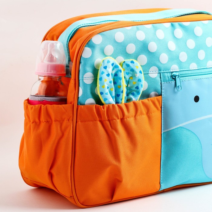 Удобная сумка позволит вам взять с собой на прогулку все необходимые малышу вещи. Положите во вместительное отделение сменные подгузники, комплект белья, запас питания и детский поильник или бутылочку. Кармашки подойдут для хранения мелких предметов.
