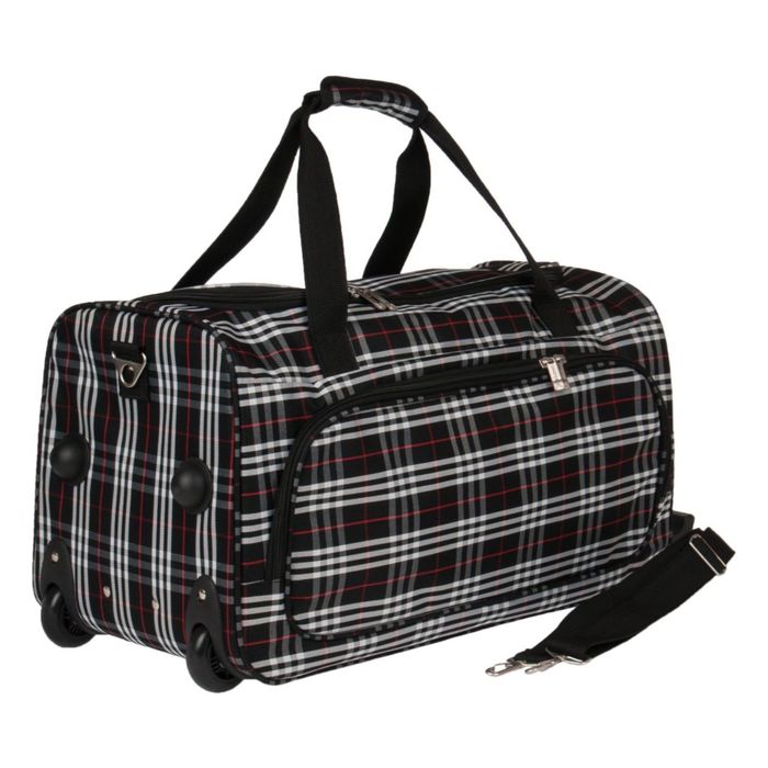 Сумка дорожная на колёсах, 55 × 29 × 28 см, отделение на молнии, карман, ремень через плечо, цвет чёрный