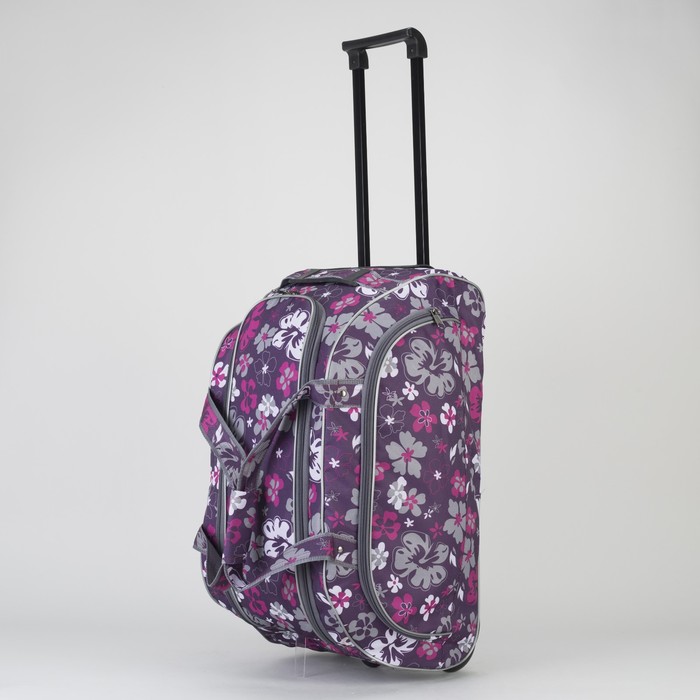 Сумка дорожная на колёсах «Цветы», 1 отдел, 1 наружный карман, цвет фиолетовый