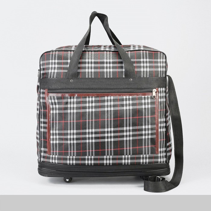 Сумка дорожная на колёсах «Клетка», отдел на молнии, трансформер, наружный карман, длинный ремень, цвет чёрный