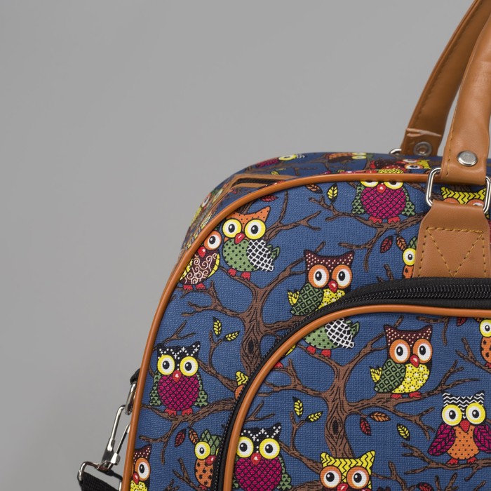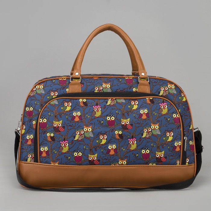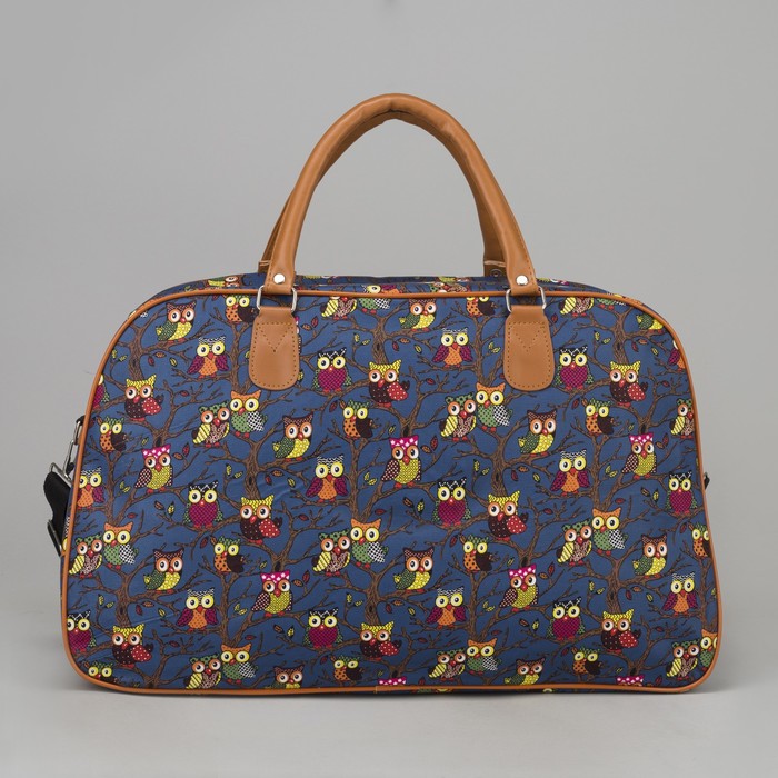 Сумка дорожная "Совы", отдел на молнии, наружный карман, длинный ремень, цвет синий