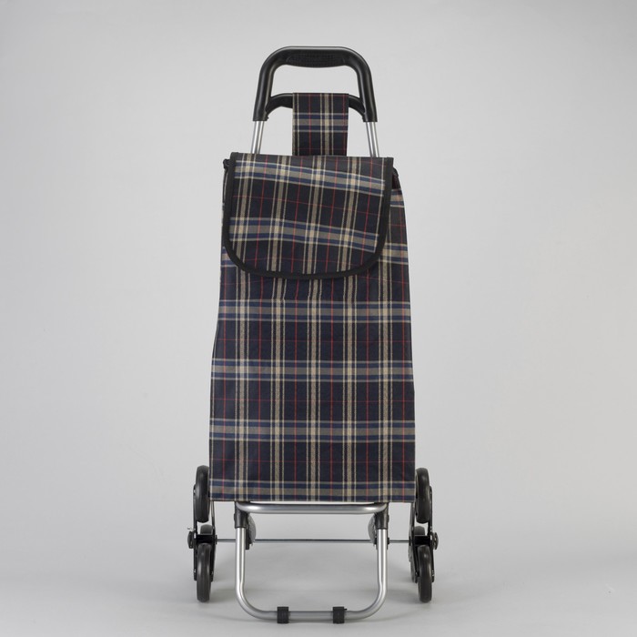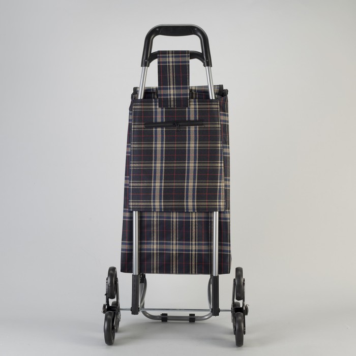 Сумка хозяйственная на колёсах «Клетка», отдел на шнурке, наружный карман, 6 колёс, нагрузка до 20 кг, цвет чёрный