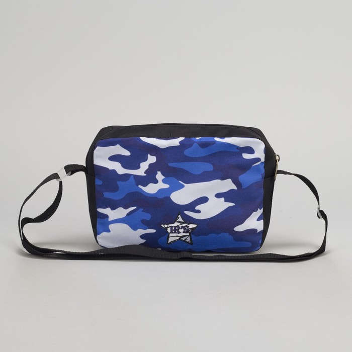 Сумка молодёжная на молнии "Милитари", 2 отдела, регулируемый ремень, чёрный/синий