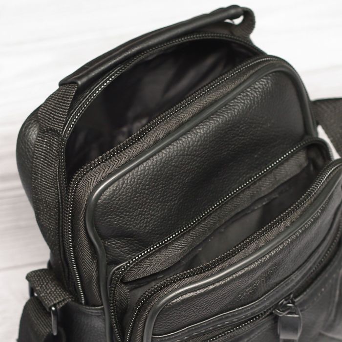 Сумка мужская, 2 отдела на молнии, наружный карман, ручка, длинный ремень, цвет чёрный