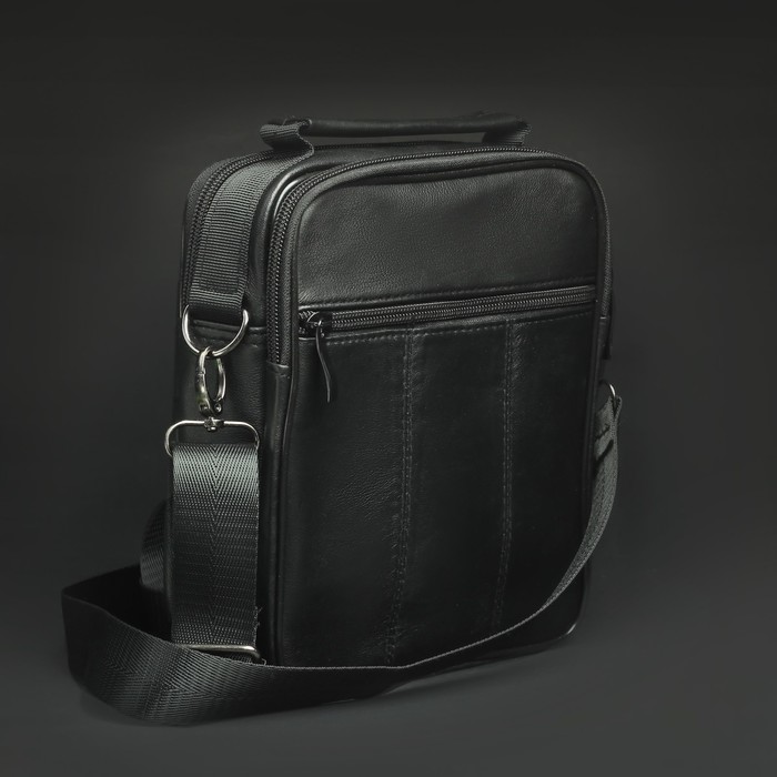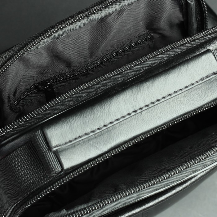 Сумка мужская, 2 отдела на молниях, 2 наружных кармана, регулируемая стропа, цвет чёрный