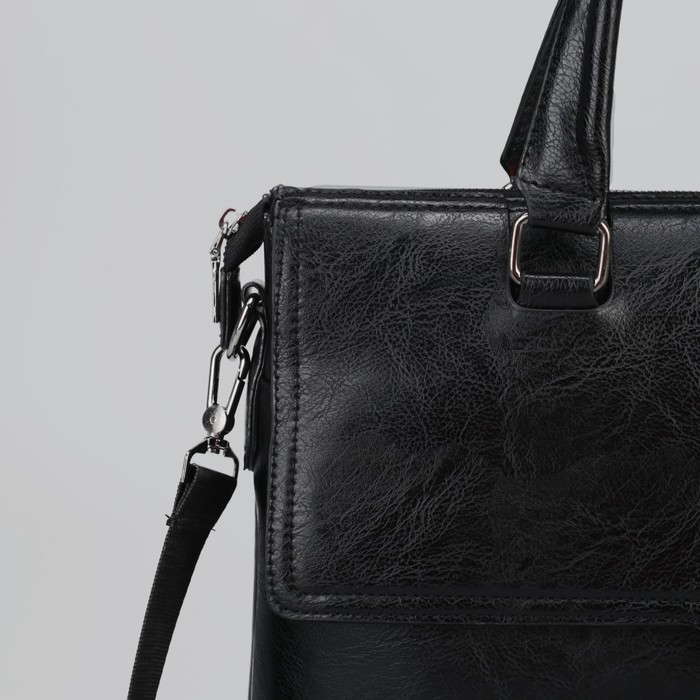 Сумка мужская, 2 отдела на молниях, 2 наружных кармана, регулируемый ремень, цвет чёрный