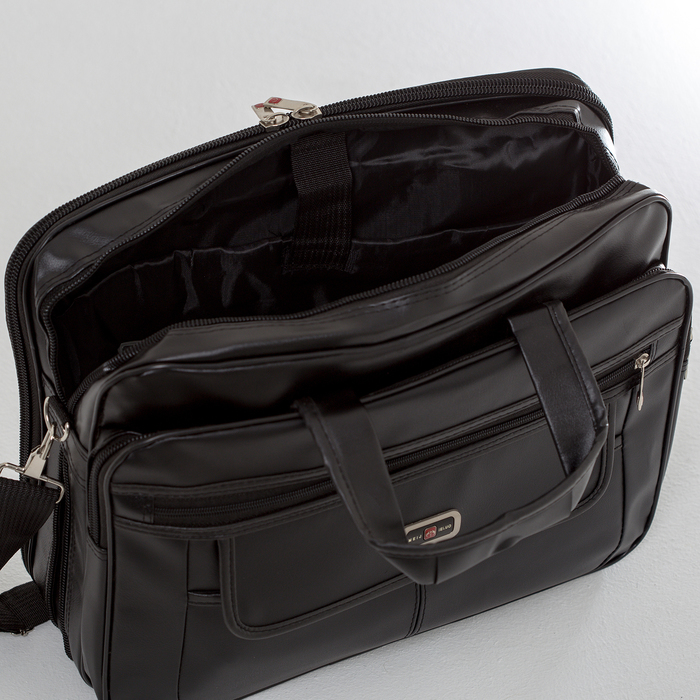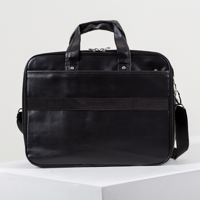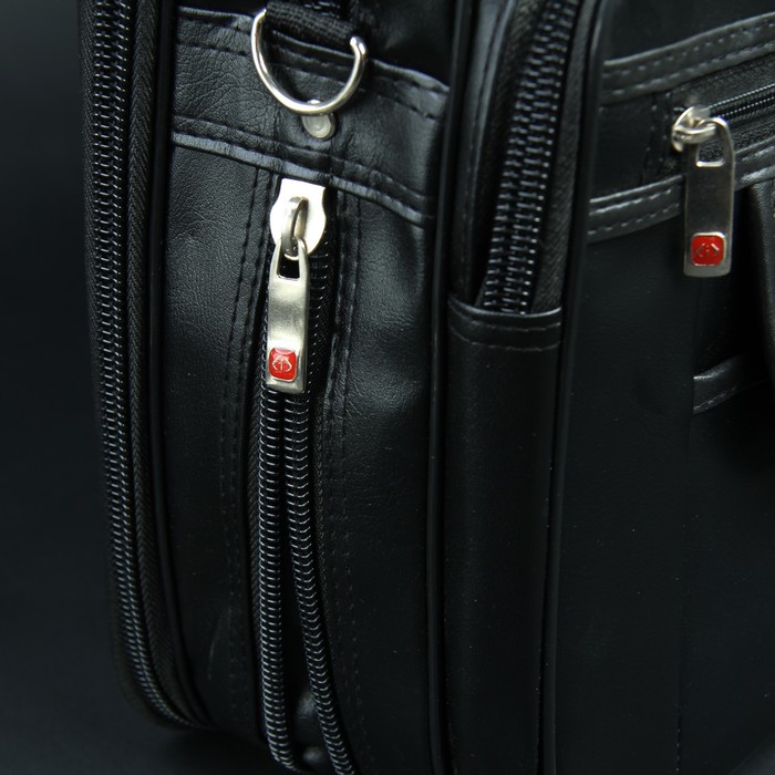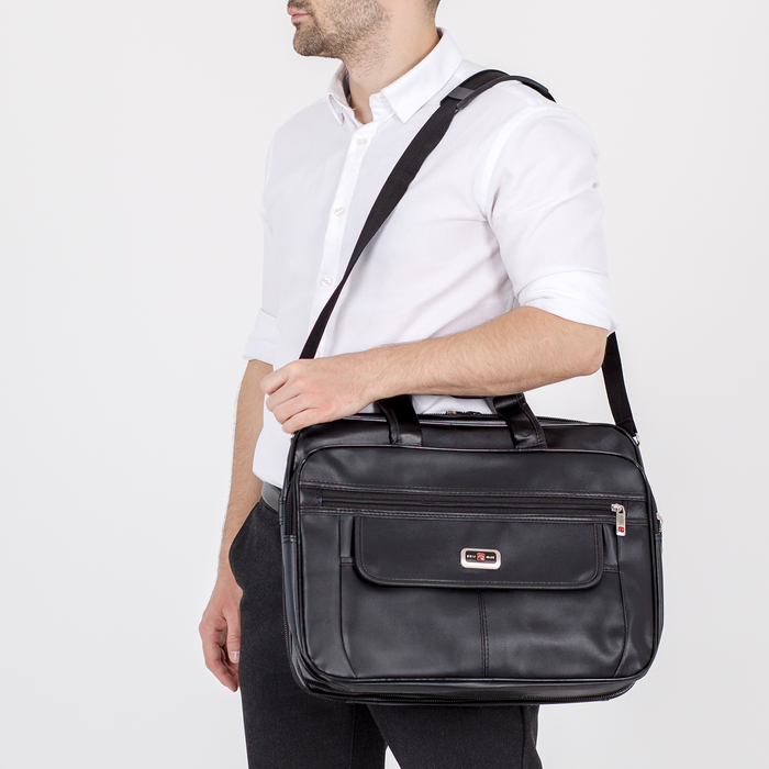 Сумка мужская, 2 отдела на молниях, 3 наружных кармана, крепёж для чемодана, длинный ремень, цвет чёрный