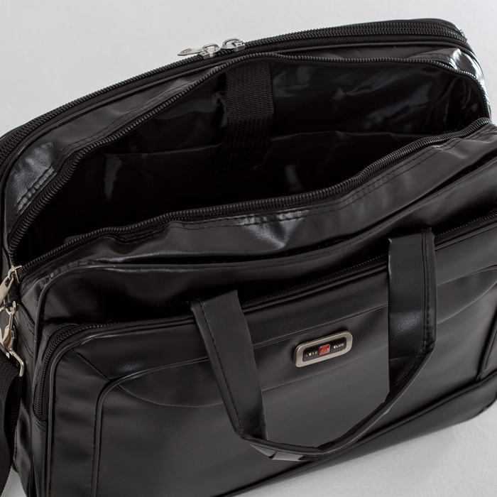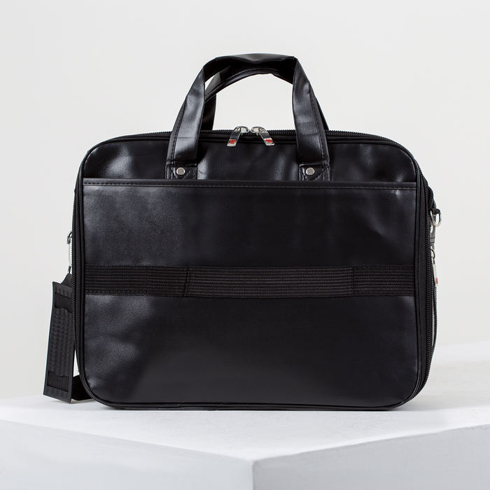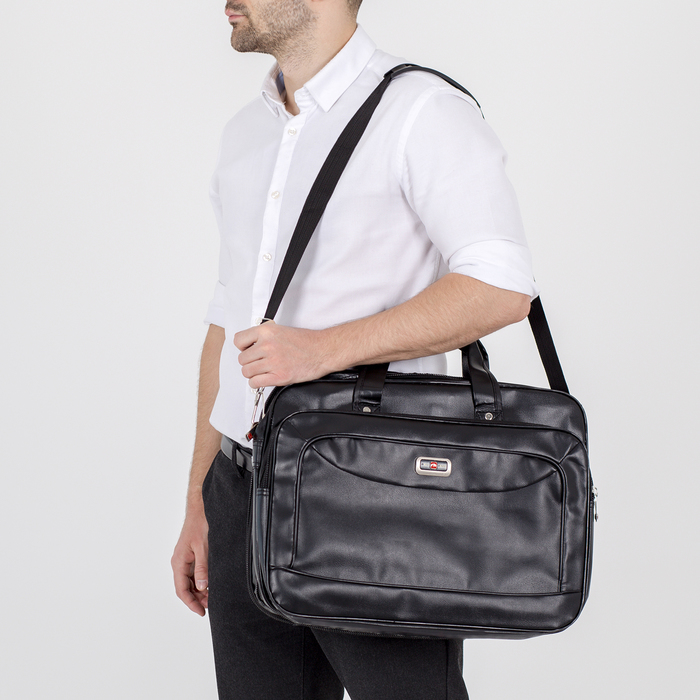 Сумка мужская, 2 отдела на молниях, 3 наружных кармана, крепёж для чемодана, длинный ремень, цвет чёрный