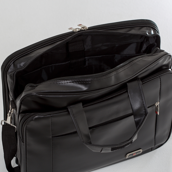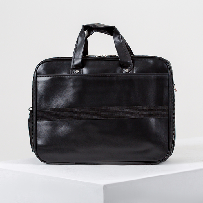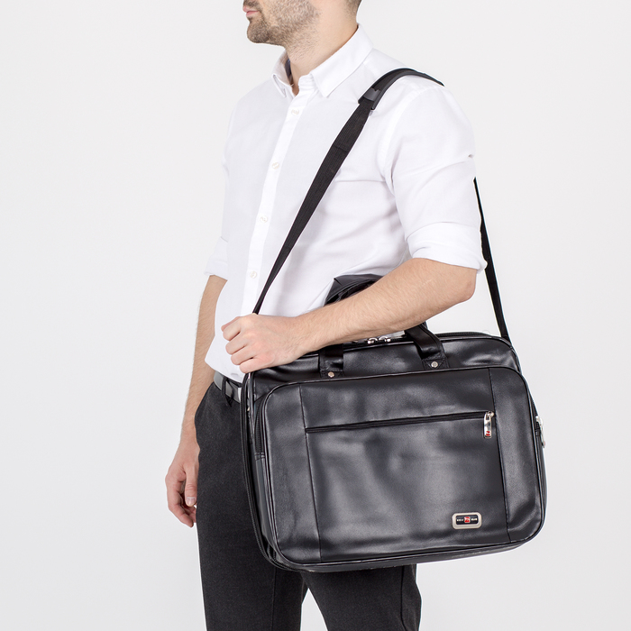 Сумка мужская, 2 отдела на молниях, 3 наружных кармана, крепёж для чемодана, длинный ремень, цвет чёрный