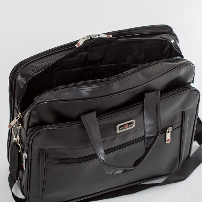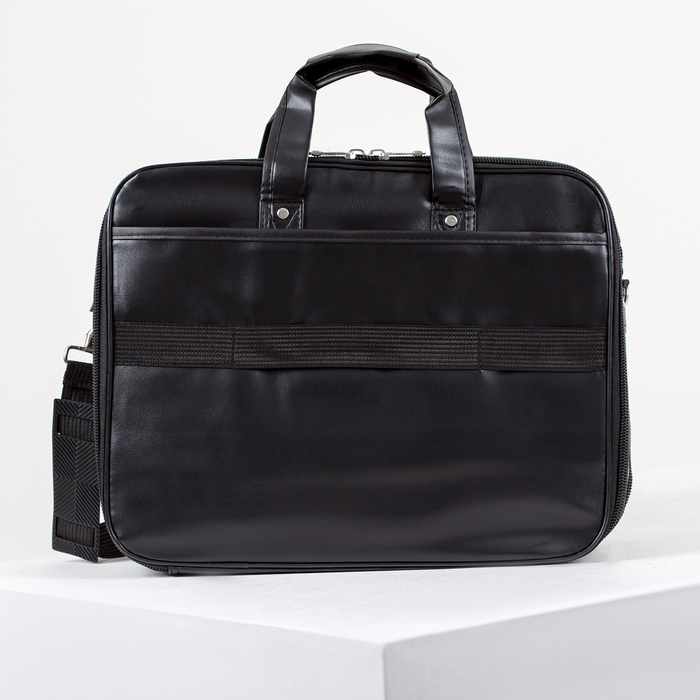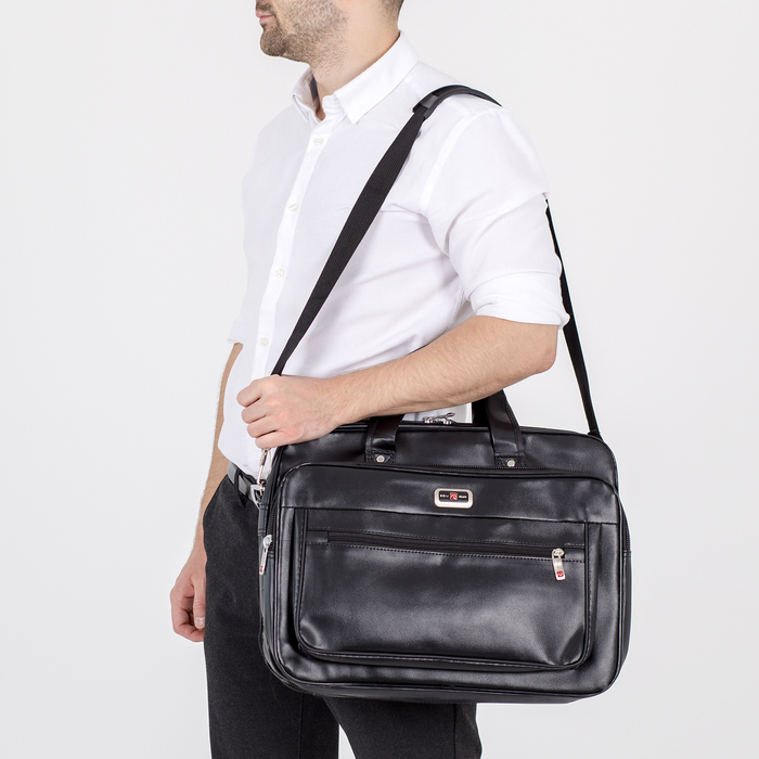 Сумка мужская, 2 отдела на молниях, 3 наружных кармана, крепёж для чемодана, длинный ремень, цвет чёрный