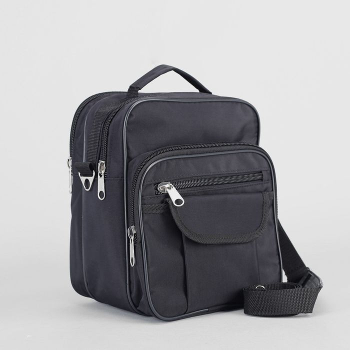 Сумка мужская на молнии, 2 отдела, 3 наружных кармана, регулируемый ремень, цвет чёрный