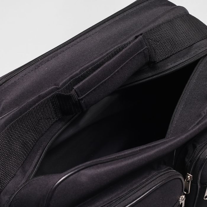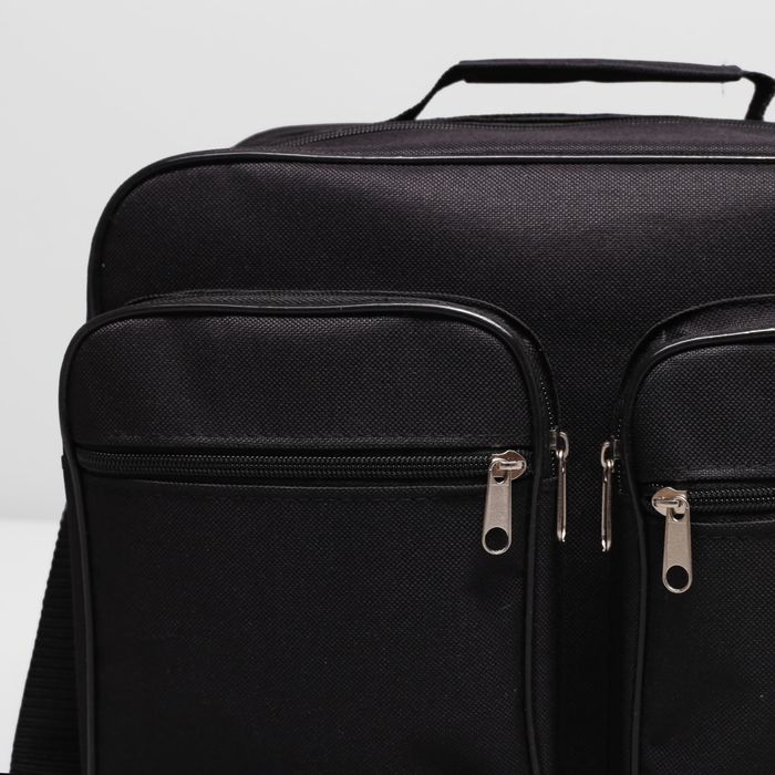 Сумка мужская на молнии, 2 отдела, 4 наружных кармана, регулируемый ремень, цвет чёрный