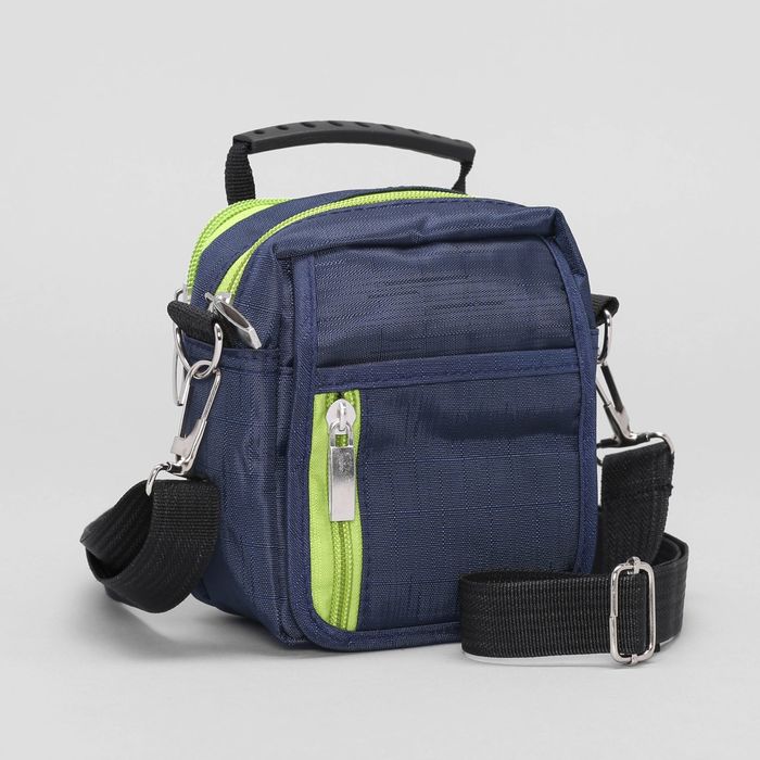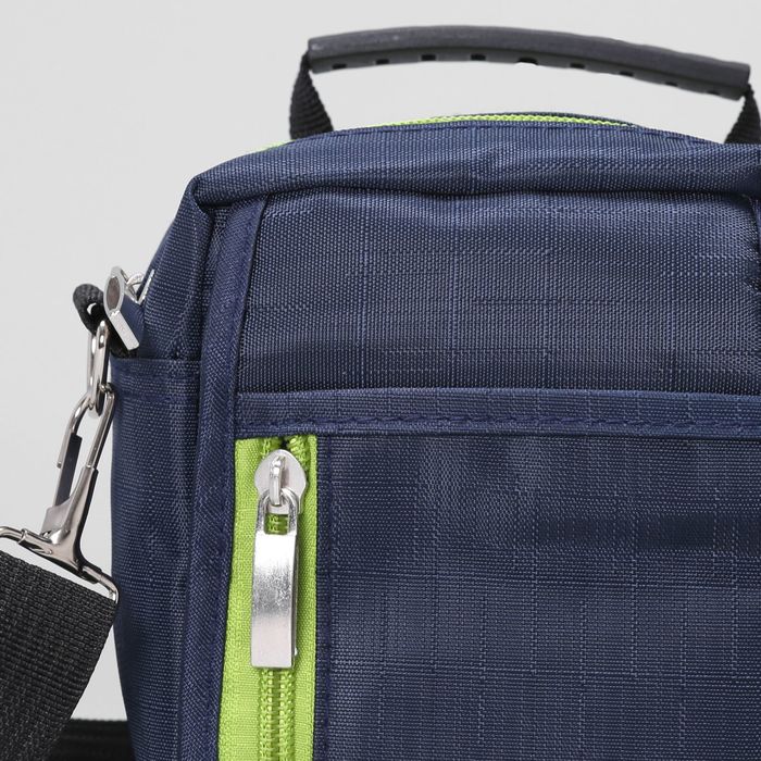 Сумка мужская на пояс, 2 отдела, 2 наружных кармана, длинный ремень, цвет синий/салатовый