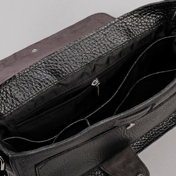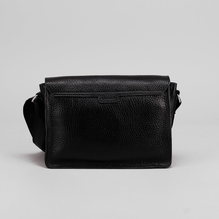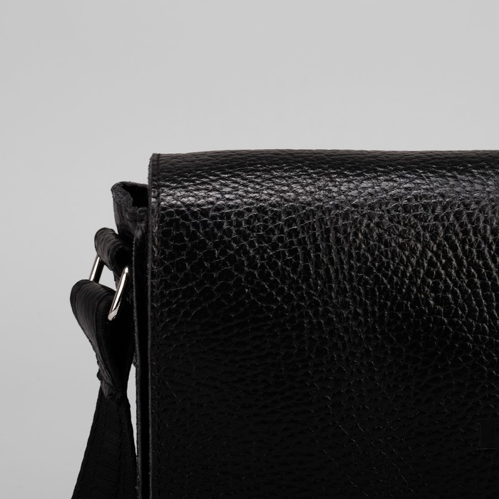 Сумка мужская, отдел на клапане, наружный карман, длинный ремень, цвет чёрный