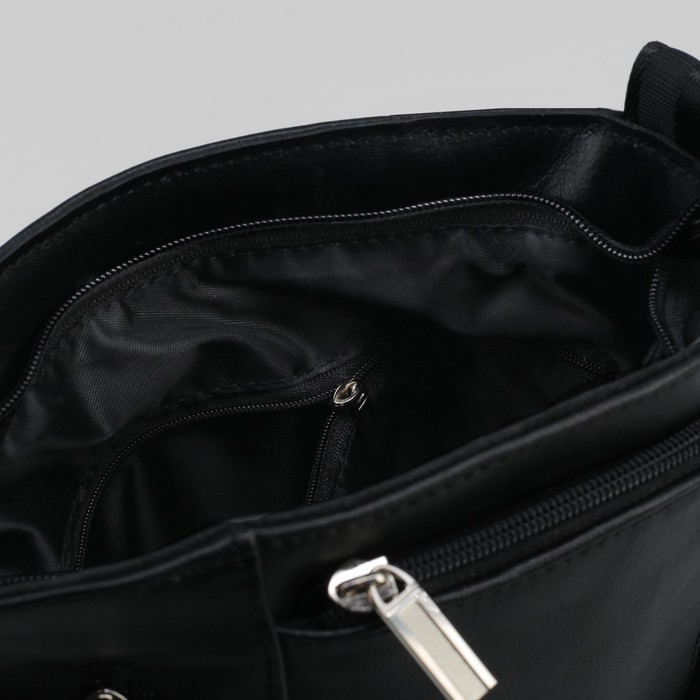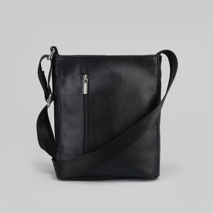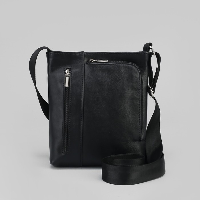 Сумка мужская, отдел на молнии, 2 наружных кармана, длинный ремень, цвет чёрный