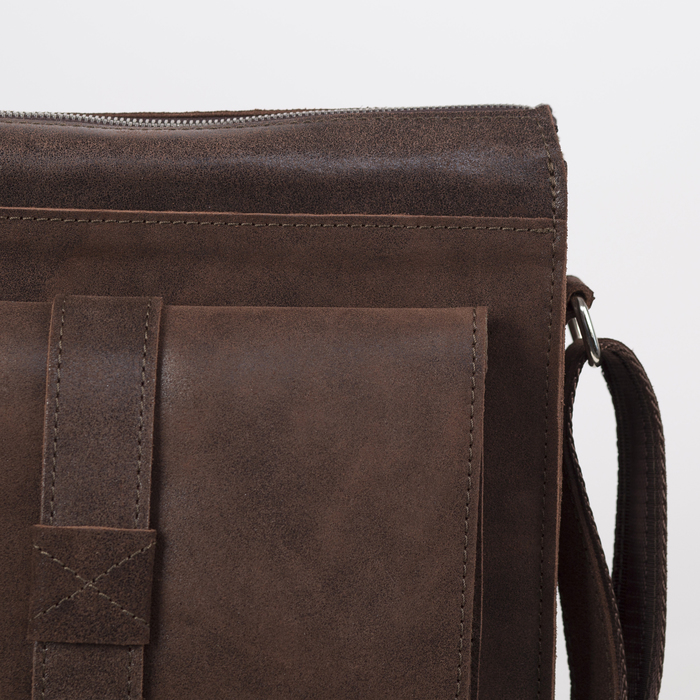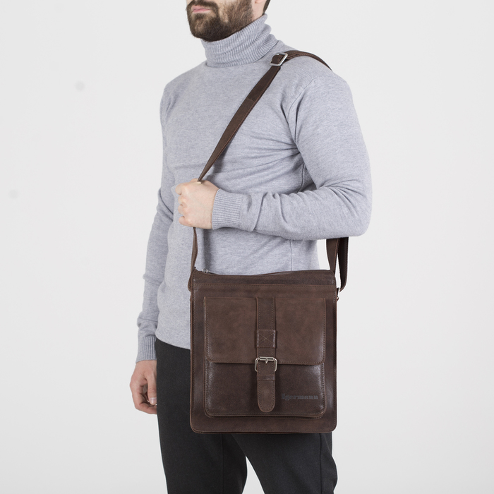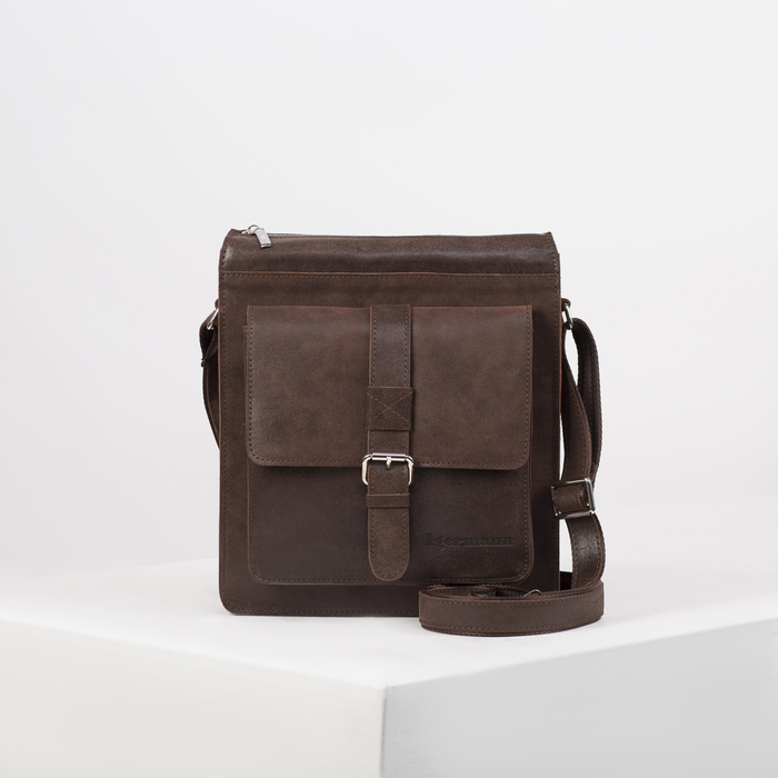 Сумка мужская, отдел на молнии, 2 наружных кармана, длинный ремень, цвет коричневый