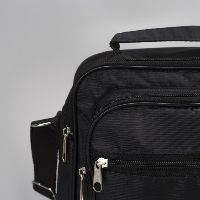 Сумка мужская, отдел на молнии, 2 наружных кармана, регулируемый ремень, цвет чёрный