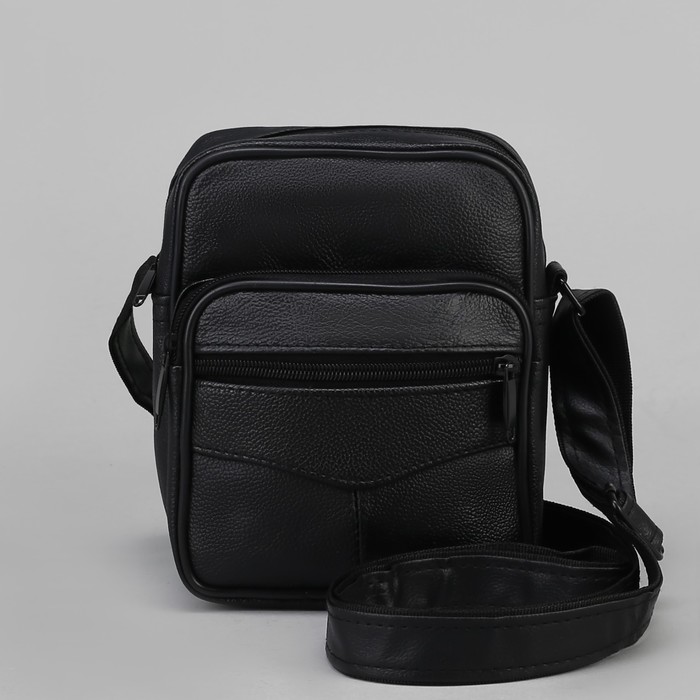 Сумка мужская, отдел на молнии, 3 наружных кармана, регулируемый ремень, цвет чёрный