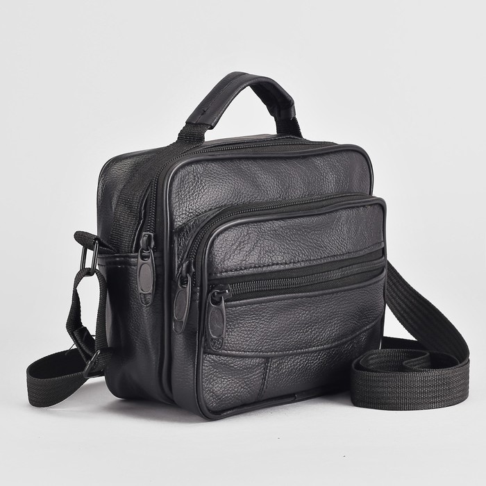 Сумка мужская, отдел на молнии, 3 наружных кармана, регулируемый ремень, цвет чёрный