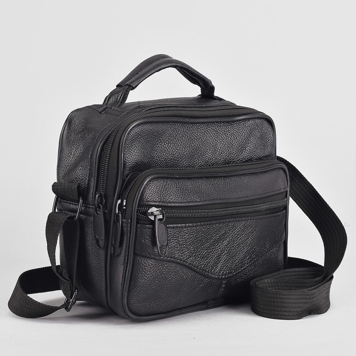 Сумка мужская, отдел на молнии, 3 наружных кармана, регулируемый ремень, цвет чёрный